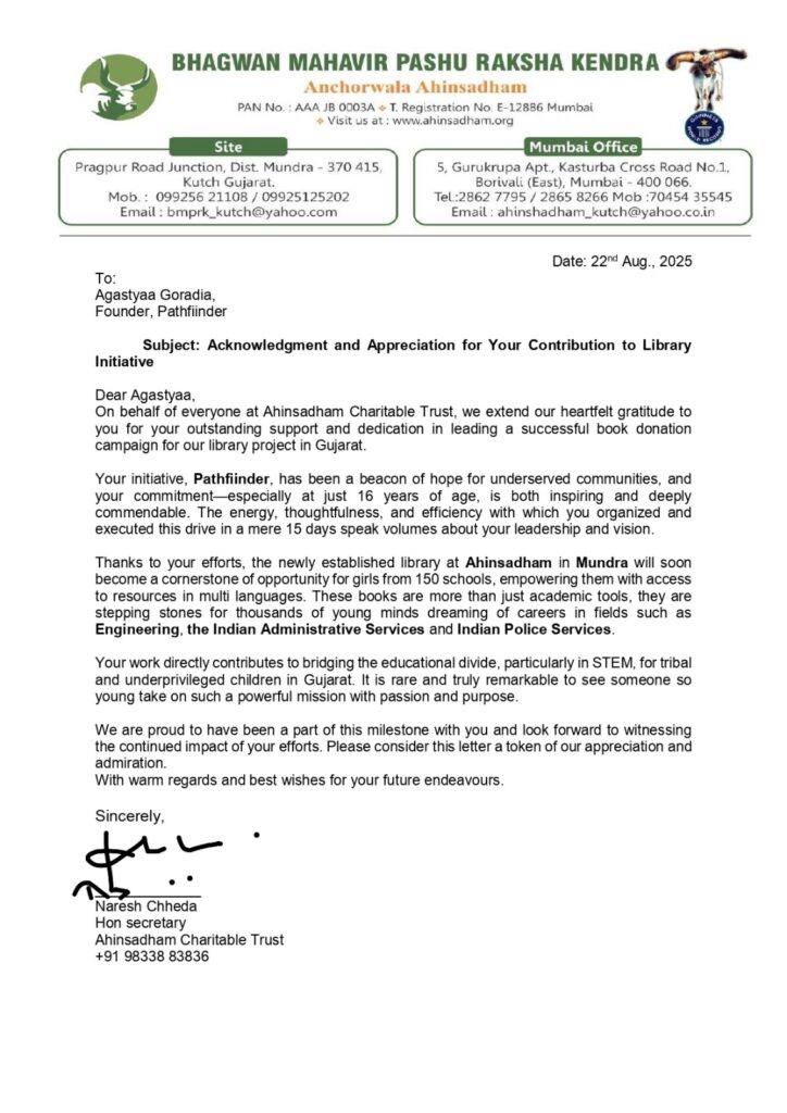 Pathfinder has been recognised for its work of supporting Tribal students in improving their education standards by supporting in English, Mathematics and Science curriculum.